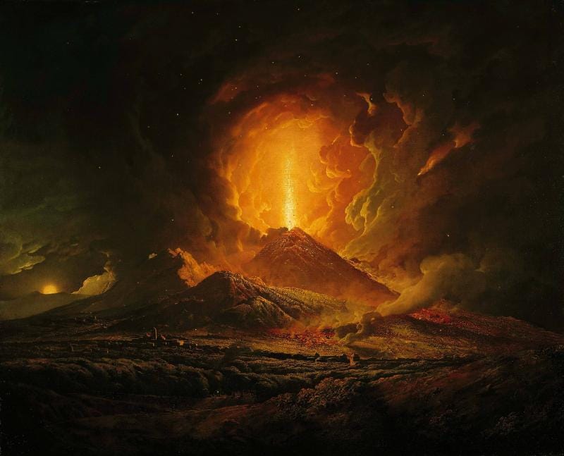 A volcanic eruption is a textbook cause of the aesthetic experience known as the sublime, defined by a sense of awe or even terror. About the sublime, Edmund Burke had written in 1757: